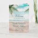 Ön Breeze Paweed Beach Scene, med Ocean Vågar, Sandy Beach och Handflatan Träd, med ett vackert teal blå himmel. Med Typsnitt för modern typografi. En tropisk sommarströ eller ett målbröllop - Personlig Bröllop Ceremony Folded Program! ~ Kolla min butik för att se hela bröllop-svit för den här designen!