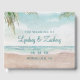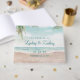 Ön Breeze Paweed Beach Scene, med Ocean Vågar, Sandy Beach och Handflatan Träd, med ett vackert teal blå himmel. Med Typsnitt för modern typografi. En tropisk sommarströ eller en målbröllopsdesign - Personlig Bröllop Monogram Guestbook! ~ Kolla min butik för att se hela bröllop-svit för den här designen!