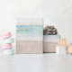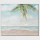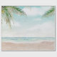 Ön Bris Målade Strandscen, med Havsvågor, Sandstrand och Palmträd, med en vacker tealblå himmel. En Sommar Tropisk Strand, Eller destination bröllopsdesign. En trendig Magisk designpresent! ~ Kolla min butik för att se hela brölloppspaketet för denna design!