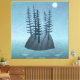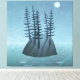 En avlägsen ö mitten i havet med gräs träd. Måne skiner på denna fredliga scen, och äventyrskoncerner! Sjölandskapets ursprungliga målning av Nic Squirrell.