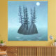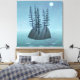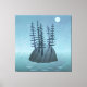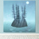 En avlägsen ö mitten i havet med gräs träd. Måne skiner på denna fredliga scen, och äventyrskoncerner! Sjölandskapets ursprungliga målning av Nic Squirrell.