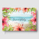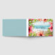Öinspirerade gästgården bröllop bok har ett vattenfärgstropiskt strandlandskap som är inramat av handflatan löv och rosa- och korallblommor. Baksidan är fast havsblå. Anpassa den med ditt eget namn och bröllop-datum för en unik keepé.
