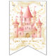 Celebrate your little princess's magical day with this pink and gold castle Happy Birthday bunting banner! Features pink and gold fairytale castle and and magical stars.