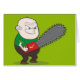Denna är en tecknadillustration av en äldre djärv man som är den tittar sorten av argen på hans chainsaw. Låt oss hoppas honom planerar endast på klipp besegrar ett mer ond träd och ingenting!