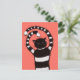 Onda katt vinter vykort - digital illustration som visar en randig elak kattunge med konstiga böjda tassar på en alltid livfull korallbakgrund täckt av snöflingor.