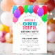 Färgfulla ballonger och rosa accents dekorerar den här inbjudande perfekten för en 1underbar första Födelsedagsfest. Varje fält är fullt anpassade att säga exakt vad ni vill!