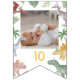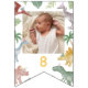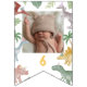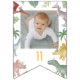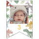 Decorate your party with this adorable dinosaur bunting photo banner featuring watercolor dinos and greenery. Perfect for a prehistoric One A Saurus celebration.