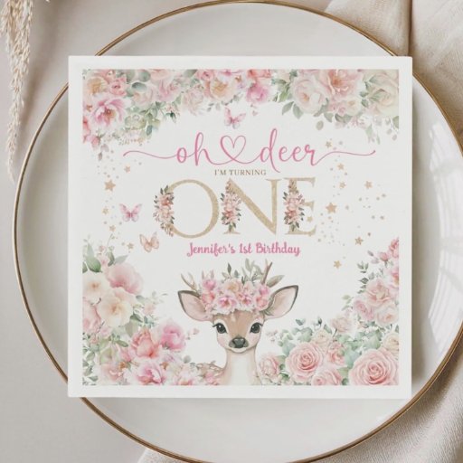 Fall into the magic of your little one's first birthday with our "Oh Deer I'm One" 1st Birthday Invitation! Make her first birthday shine, don't wait - create a glittering memory today! Order yours and let's make her birthday celebration unforgettable! Please note: The glitter details are simulated in the artwork. No actual glitter will be used in the making of this product.