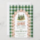 One Happy Camper Wood Slice Arch Green Plaid Inbjudningar