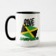 Mugg skryter med en vacker utformning av Jamaicas flagga med ord "One Kärlek Jamaica". Utsidan är vit, medan insida och handtaget är svarta. Det är perfekt för daglig använda, oavsett om du njuter av kaffe eller te hemma eller på kontoret.
