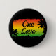 Knappbricka med en KÄRLEK med svart silhuette handflatan träd över en rasta flagga färgad solnedgång
