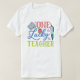Den här designen har en vit t-shirt med texten "ONE Lucky TEACHER" i ett stiliserat teckensnitt med många färg. I utformningen ingår bilder av bok, äpple och penna.