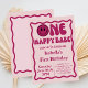 En Lycklig-flicka, första födelsedagsinbjudan. Rosa och Vågigt kurva Vågigt bjud in Retro Vågigt Rosa Wave Curve Modern One Lycklig Babe Girl Första födelsedagsinbjudan. En Lycklig-babe-flicka första födelsedagsinbjudan.