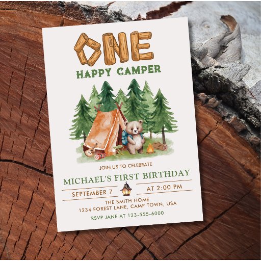 Fira din lilla milstolpe med mitt första födelsedagstema för "One Lycklig Camper". Den här fina designen är perfekten för din blivande utforskares speciella dag. Med vismliknande skogarter, rustik charm och ett lekfullt utomhustema