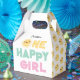 En vacker hand plockade sol-födelsedagskalender. En söt "En lycklig-tjej" var förstafödelsedagsfestens favoritbox. Ett vackert favorittema för sommarfödelsedag i sol som kan anpassas till dina detaljer.