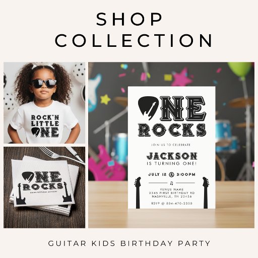 Roll into your first milestone with this cool One Rocks guitar pick birthday party napkin for one year old kids. Great for little rockstars who love music. Personalize it with your event details for a rocking event that is unique to you.
