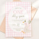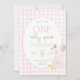 One Silly Goose Birthday Invite Pink Gingham First Inbjudningar