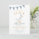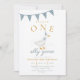 ONE Silly Goose Blue Gingham Boy First Birthday Inbjudningar
