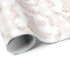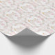 Beautiful wrapping paper featuring whimsical watercolor goose in a party hat, delicate pink ribbons, daisy florals, and soft pastel gingham pattern.
