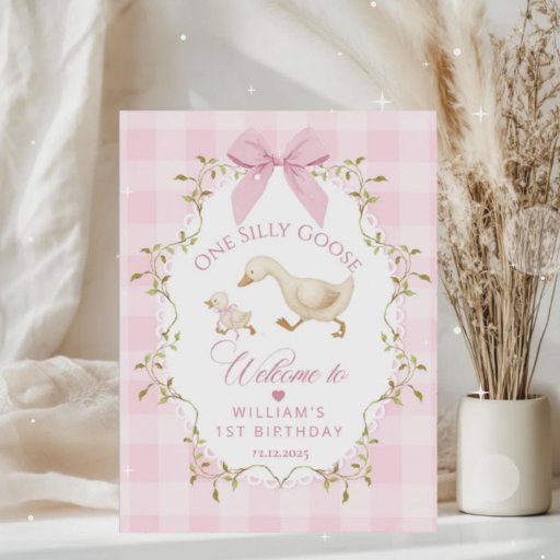One Silly Goose Pink Bow Girl 1st Birthday Invitation
