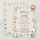 Wild One Tropical Jungle Safari Animals Birthday Invitation