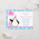 En förtjusande rosa- och blåttsnowflake övervintrar underlandfödelsedagsfest inbjudan. Presentera en gullig pingvin, födelsedagballonger och gåva. Gör en underbar inbjudan för en themed flick kalas för vinter.