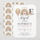 Kute, grym liten miss En underbar vattenfärgsboho målade upp vävda regnbågsformer med liten hjärtillustration, flickans inbjudan på första födelsedag. Rosa terracotta och svart. Välj mellan olika hörn i stilar om du vill veta hur inbjudan ska se ut. Regnbåge och hjärta mönster på inbjudningens baksida.