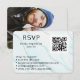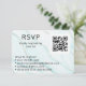 Dina gäster kommer att kärlek olika sätt att OSA till din bröllopsinbjudan. Den här ljusa turkosen ger bakgrunden på framsidan och en ställe för fotot på baksidan. Om du vill anpassa dig lägger du bara till det datum som de måste svara på och hur de kan göra detta. Använda exemplen som vägledning för alternativ och längd på text. De kan gå till din bröllop webbplats, telefon eller e-post. De kan också klicka på din QR som är länkad till webbplatsen för bröllop. DU MÅSTE ÖVERFÖRA DIN UNIQUE QR CODE, den som visas är ett exempel och kommer inte att länka till webbplatsen. Du kan hämta en QR-kod för gratis online med hjälp av URL:en på webbplatssidan bröllop. När du har koden överför du den här. På motsatt sida lägger du till ett foto. Ett lodrät rekommenderas. Detta är en del av en samling matchande och samordnade produkter av turkos till havs, ta ett ögonblick och bläddra mer i samlingen.