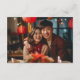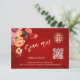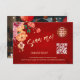 Kortet med fyrkantiga koder har lila, gult och blommor med rödpeonblommor på en skakande röd bakgrund med en lyckosymbol för kinesiskt bröllop OSA i guld dubbla. Sök efter information på QR-kortet för mig om du vill ha mer information på bröllop webbplats och osa online. Lägg till fotot på baksidan.