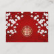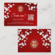 Vita körsbärssymboler på en skakande röd blommar med guld dubbla lyckosymbol kinesiskt bröllop OSA-kort. Sök efter information på QR-kortet för mig om du vill ha mer information på bröllop webbplats och osa online.