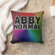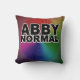 Kasta en kudde som är rolig över att vara onormal med en lek på ord med Abby Normal och en färgstark varp spiral-konst.