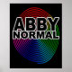 En poster som är rolig om att vara onormal med en lek på ord med Abby Normal och en färgfull warp spiral art. Kontakta Sandy på admin@giftsyoutreasure.com