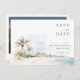 Tropical Island Watercolor Scene, Photo Save the Date.