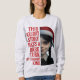 Förvandla feststämning till subtil revolt. Denna semi-realistiska 3D-onsdag-design visar ett svagt leende under en tomtehatt och djupröd gotisk text som lyder ”Den här högtidsberättelsen tar en mörk vändning. Min favorit.” Perfekt för dem som finner glädje i den mörkare sidan av julberättande.