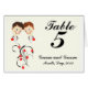 Två gulliga vintagebrudgummar på denna bordsnummertältvykort. Avbilda skrivs ut på tre sidor för att låta dig förlägga den på bord utan ett stativ. Röd och svart vintagedesign.