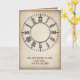 Romerska siffror på klockan ansikte utan händer på sepia, texturerad bakgrund för bröllop-årsdagen för make/maka