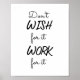 Håll dig motiverad och inspirerad av poster "Önska inte för det fungerar för det". Den här poster är en perfekt för att ge din arbetsyta eller ditt hem lite motivation och inspiration. Budskapet är en påminnelse om att framgången inte är en tillfällighet för tur, utan snarare ett resultat av hårt arbete, engagemang och uthållighet. "Önska inte för att det fungerar" poster en underbar gåva till alla som behöver stimulans och motivation, oavsett om det gäller arbete, skola eller personliga mål. Det är lämpligt för alla tillfälle, från studenten till ett nytt arbete, och det kommer säkerligen att inspirera och stärka dem som tar emot det.