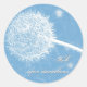 Söt blå och vit design ge är ett fredligt inslag i denna dandeliondekalk. Blås och önska!