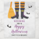 Leketiket Halloween-vin etikett med häxskor, randiga strumpor och fladdermöss med frasen "Önskar dig en glad Halloween". Ett roligt sätt att klä upp flaskor för Halloween-fester, värdinnagåvor eller kusliga säsongsfiranden. Anpassa med ditt familj eller företagsnamn för en personlig touch.