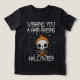 Gå in i den här skämtsamma skjortan med den här lekande, chibi-stil-skeleton. Med en söt vektordesign av ett skelett är den här roligten och den snabba garantin perfekt för Halloween-entusiaster. Skelet dras i ett berömvärt komibikonst stil, med ett överdimensionerat ögon och en eländig flin. Parad med sloganen "Önskar dig hårstramning Halloween"" är den här skjortan en blandning av dåsighet och charm. Vare sig du är redo för säsongen eller bara kärlek Halloween-vibes, är den här t-tröjan säker på att tillföra lite roligt till din garderob.
