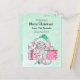 Den beundransvärda lilla hand plockade-musen i en julhatt som håller ett candy cane-vismiskt vykort. Lägg bara till ditt namn- och personlig-meddelande i personaliseringsområdet. Söt grönt- och rosa-kort med snöflingor-bakgrund.