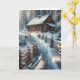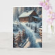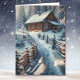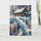 Julkort. Text kan vara personlig på insidan. En söt vattenfärgsbild av stil ai-konsten skildrar en loghytt i skogen.