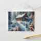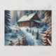 Julvykort. Text kan vara personlig på insidan. En söt vattenfärgsbild av stil ai-konsten skildrar en loghytt i skogen.
