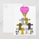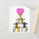 Olika tecknader i färgaden som står på varandra axlar med den översta katten som håller ett rosa som säger "önskar dig".