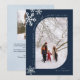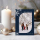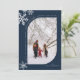 Stick ut under höstlovet med ett unikt julkort med rundade kanter. Greetings sträcker sig runt två sidor av ditt foto och lyder "Vi önskar Er en God Jul och ett Gott Nytt År! Designen har vita snöflingemotiv och en marinblå bakgrund. Massor av plats på baksidan för att lägga till ett längre julmeddelande och ett extra foto.
