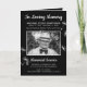 I programmet Loving Memory, som på framsidan innehåller ett foto av din älskade, deras namn, data, minnesplatsen, evenemangets datum och flytande önskat utsäde som dekoration. På insidan finns en obituär och serviceordning, och på baksidan en tackkort och vakuumplatsen. All text kan anpassas.