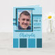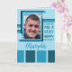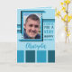 Anpassa det här hälsningskortet med namn, foto och meddelande. Jag önskar dig en väldigt grattis på födelsedagen. Designad i mörk och ljusblå med rand.