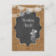 Denna moderna och trendiga svarta och vita krittavlan ser ut som ett vintage bröllopsgåva-välkomstkort med rustika bruna falska juteutseende med illustrationer av en murarvas med blommor, blad och grenar i, och två spetsiga flaggor överst som matchar den bröllopsinbjudan som visas nedan. Med sina mångsidiga färger kan du använda den året runt på ditt rustika eller lantliga vår-, sommar-, höst- eller vinterbröllop. Du kan också ändra texten för att göra det till ett boendekort, ett gåvoregisterkort, ett riktningskort eller ett bröllopsinformationskort. Den visas här på vanligt papper. Den är lätt att anpassa med din egen information. **** Observera att allt kommer att skrivas ut som det visas på din skärm. Zazzle kommer inte att redigera någonting för stavfel eller felaktig justering etc., och jag kommer inte att se det när du har beställt det. Om du behöver hjälp med din formulering, vänligen mejla mig INNAN du beställer. OCKSÅ kan vissa av de olika formerna KLIPPA bort delar av designen, så det är b