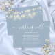 Detta eleganta dammiga blå bröllops önskebrunnkort kan anpassas med ditt speciella meddelande och namn och vackra strängljus på baksidan. Designad av Thisisnotme©