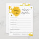 Se till att dina duschgäster fyller ut det här vackra önskemål för baby-kort vid din babydusch. Med en illustration av vattenfärgad bikupa, bikaka och stödbin. Anpassa Mamma till namn och duschdatum.
